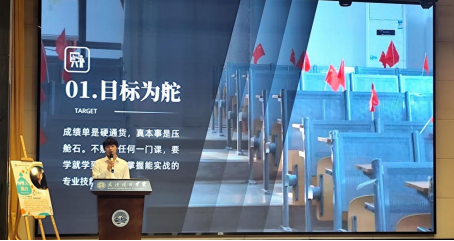 刚退去“新生”身份,却已经斩获几项国奖省奖的王宇畅,从竞赛经历的角度,为新生展示了另一种成长路径。他分享了自己在学习中的攻坚克难过程,如何与好友协作解决问题,以及在比赛中坚持到底的经历。王宇畅强调,比赛不仅是技能的较量,更是心态的比拼。他详细介绍了后续可参与的专业相关比赛,包括蓝桥杯、电工杯、大学生数学建模大赛等,鼓励同学们积极参与其中。