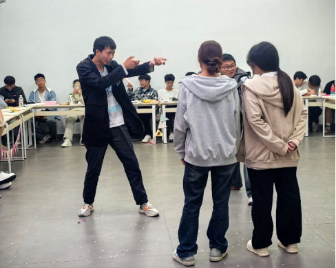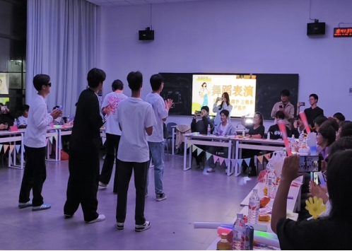 接下来,在“真假难辨“环节,主席团成员饮尽杯子里的“饮料”后表情各异,让大家从中判断谁的杯子里是白醋。现场有的聚精会神观察,有的掩嘴偷笑,气氛活跃融洽,同学们在欢笑中拉近了彼此的距离。“你画我猜”的趣味活动中,同学们凭借着丰富的肢体语言,再一次将现场氛围推向高潮。