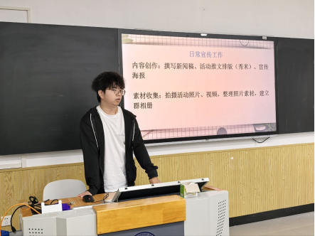学习部干事李洋针对“第二课堂”成绩单管理开展专项培训。他围绕名单收取、审核、上传三大核心环节,明确各环节的标准要求与分工细则,引导干事以严谨细致的态度投入工作,切实为学院学风建设提供有力支撑。