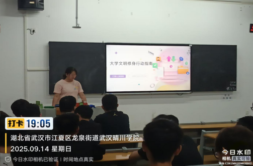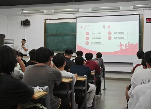 2025 年9月14日17:00,谌文韬老师在教1-307开展了“开学第一课”主题班会。谌文韬老师首先代表学校对2025级的新同学表示热烈欢迎,并从认知大学篇、新生过渡篇、习惯养成篇、反诈防贷篇、职业规划篇五个方面,全面地向新同学们开展了入学教育,希望新同学们尽快适应新的校园环境,开始自己新的大学生活。