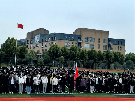 当清晨的第一缕阳光洒向操场,激昂的序曲悄然响起,师生们以整齐的列队,静候五星红旗冉冉升起的神圣时刻。伴随激昂的歌声,师生们肃立凝视,目光追随那抹鲜红的国旗向上攀升。风拂过旗面,猎猎作响,红旗稳稳停在杆顶,在晨光中迎风飘扬。