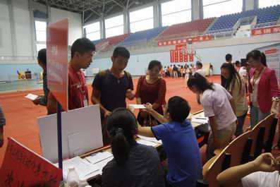 13日上午一早,系主任、辅导员、学生会全体成员以及志愿者就在体育馆就位,拉开迎新的序幕。我系迎新工作分为接待组、报到组以及引导组三个小组,接待组负责将到校的学生带往体育馆内我系第一现场提交录取通知书,缴费确认,以及户档转接,报到组再将学生带往我系第二现场办理信息登记、校园卡办理以及寝室入住等其他手续,最后由引导小组送往寝室。第一现场第二现场由系主任和辅导员亲自坐镇,学生会成员协助其工作。场外数十个志愿者坚守阵地,迎接风尘仆仆的新生和家长,热情的引导新生报名,并主动帮助家长搬运行李。