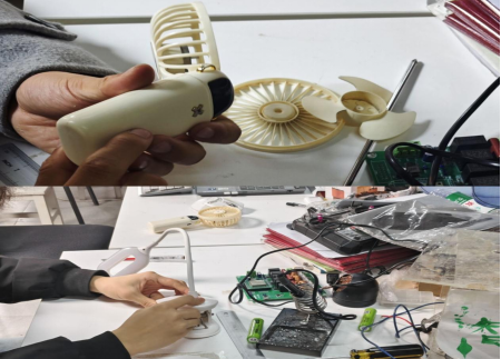 活动现场秩序井然,暖意融融。学院志愿者们提前搭建维修工作台,整齐摆放螺丝刀、万用表、电烙铁、胶带等工具,热情迎接前来送修的老师与同学。大家耐心登记故障信息,仔细询问电器问题,对台灯、吹风机、充电宝、加湿器、小风扇等各类常用小电器进行全面检测、专业维修。