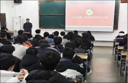 5.机械专业道德赋能专题讲解。由机械2班班长周世杰进行机械专业道德赋能PPT讲解,结合专业特色阐释专业学习中的道德准则、职业素养要求,推动专业学习与道德素养协同提升。