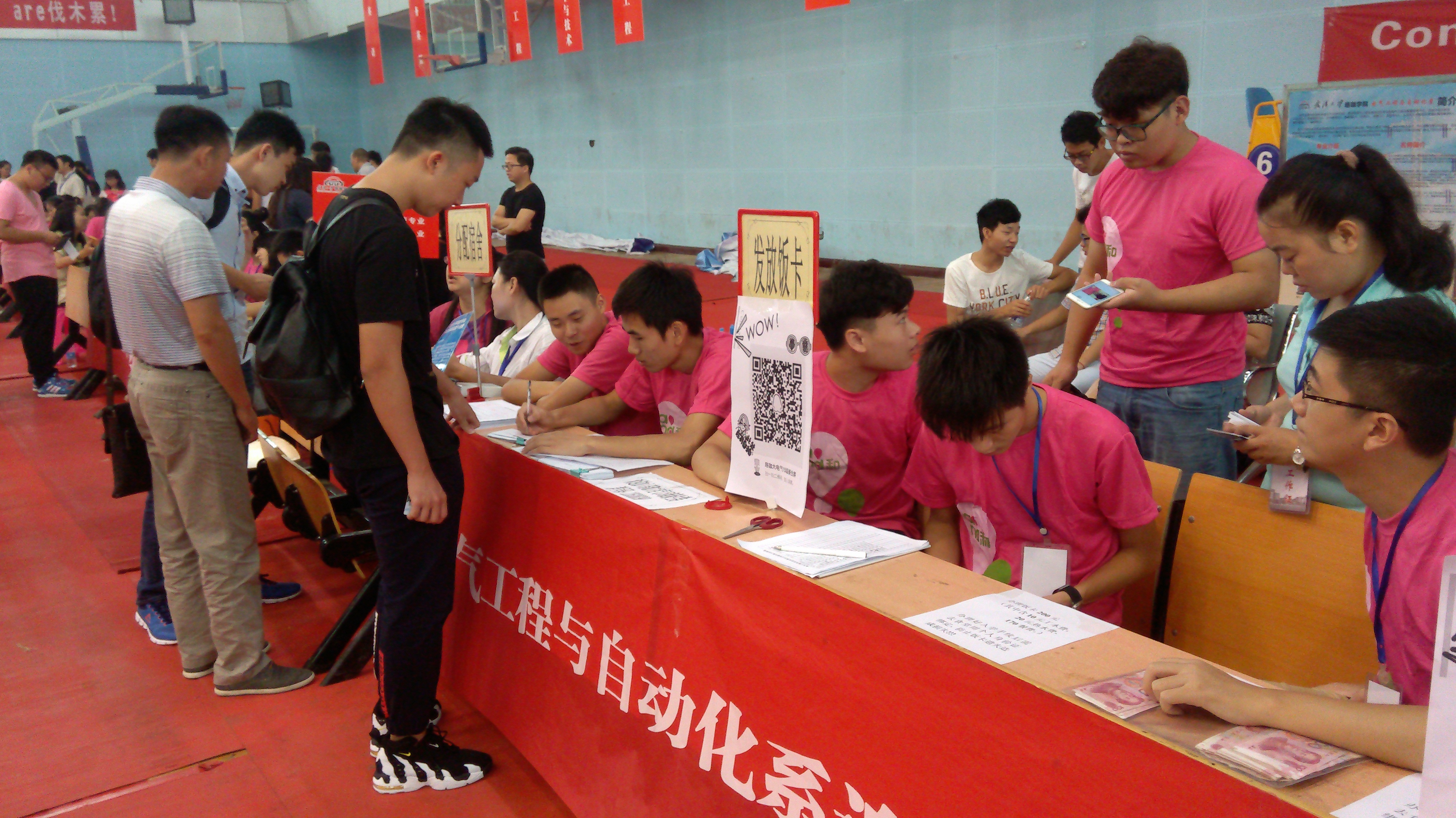 9月12日上午六点半,阴雨连绵,电气系学生会的小伙伴们却早已做好准备,带着如火的热情与真诚,随时准备着迎接新生的到来。八点左右,新生陆陆续续来到迎新现场,学生会的成员们一次次微笑着从新生手中接过行李、包裹,带领着他们办理入学手续,引导他们前往宿舍楼,安置行李。一路上,学长学姐们热情地向新生及其家长们介绍着学校的每一寸土地,每一栋建筑,每一处角落。